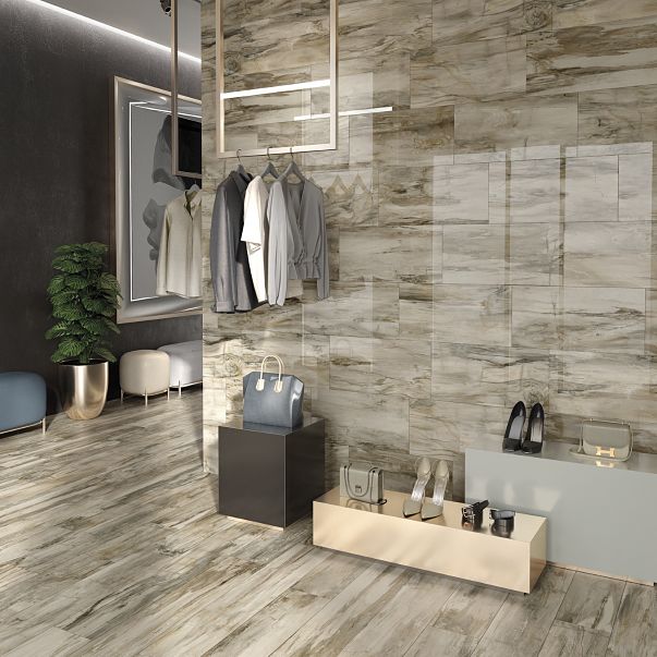 8" x 48" Petrified Wood Polished Porcelain Tile